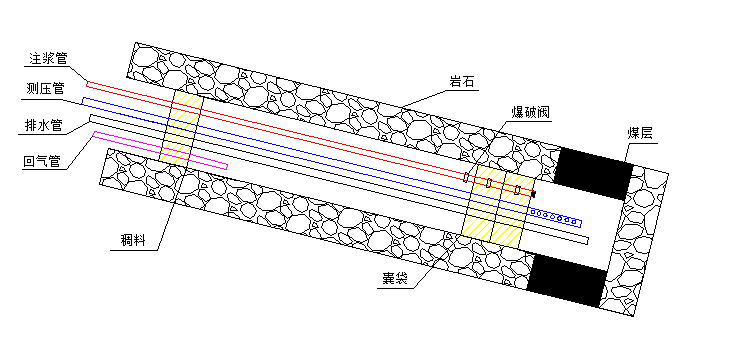 将我公司的囊袋封孔工艺与测压技术相结合,努力提高测压孔封孔带压注浆的压力,提升钻孔的封孔质量,从而较好的封堵钻孔围岩裂隙水,同时针对俯角测压孔在测压装置中设置排水管路,以消除孔内积水对测压的影响。