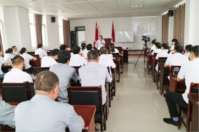 在六楼会议室,安全讲解员简单介绍了消防知识和消防器材的使用方法,并强调在险情发生后如何在安全员的指导下紧急疏散。疏散过程中员工应该拿手捂住口鼻,身体呈半蹲姿势,按照疏散线路,从安全通道有序快速撤离,直到转移到安全空地完成疏散。