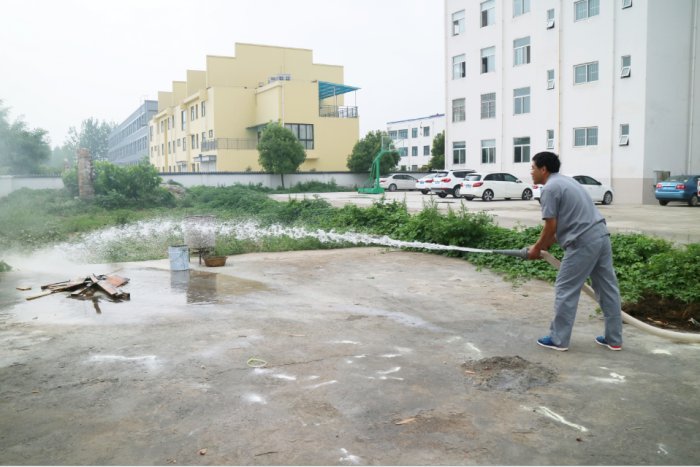 接着在空地进行灭火器材实操演练环节,安全员讲解了消防器材的原理、使用方法以及相关的注意事项,并进行了现场演试。随后让员工亲自体验了现场灭火的过程,面对熊熊燃烧的火堆,员工们严格按照灭火器材的使用方法,将大火迅速扑灭,做到了冷静沉着应对突发火情,成功快速扑灭明火的消防标准。